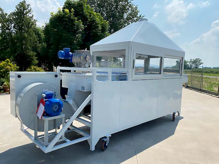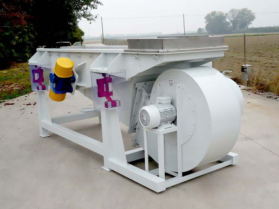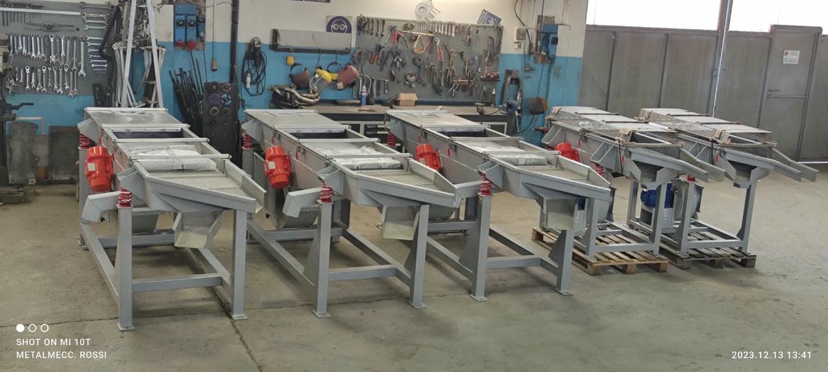 Je nach Bedarf konstruieren und bauen wir Siebe in verschiedenen Größen und mit unterschiedlichen Siebkapazitäten. Erhältlich in lackiertem Kohlenstoffstahl oder rostfreiem Stahl AISI 304.